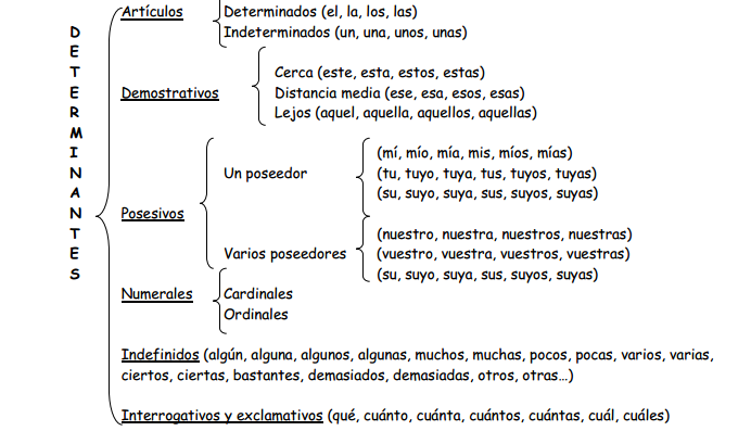 -Determinantes:acompañan al sustantivo y aparecen delante. Ejemplo: dos coches